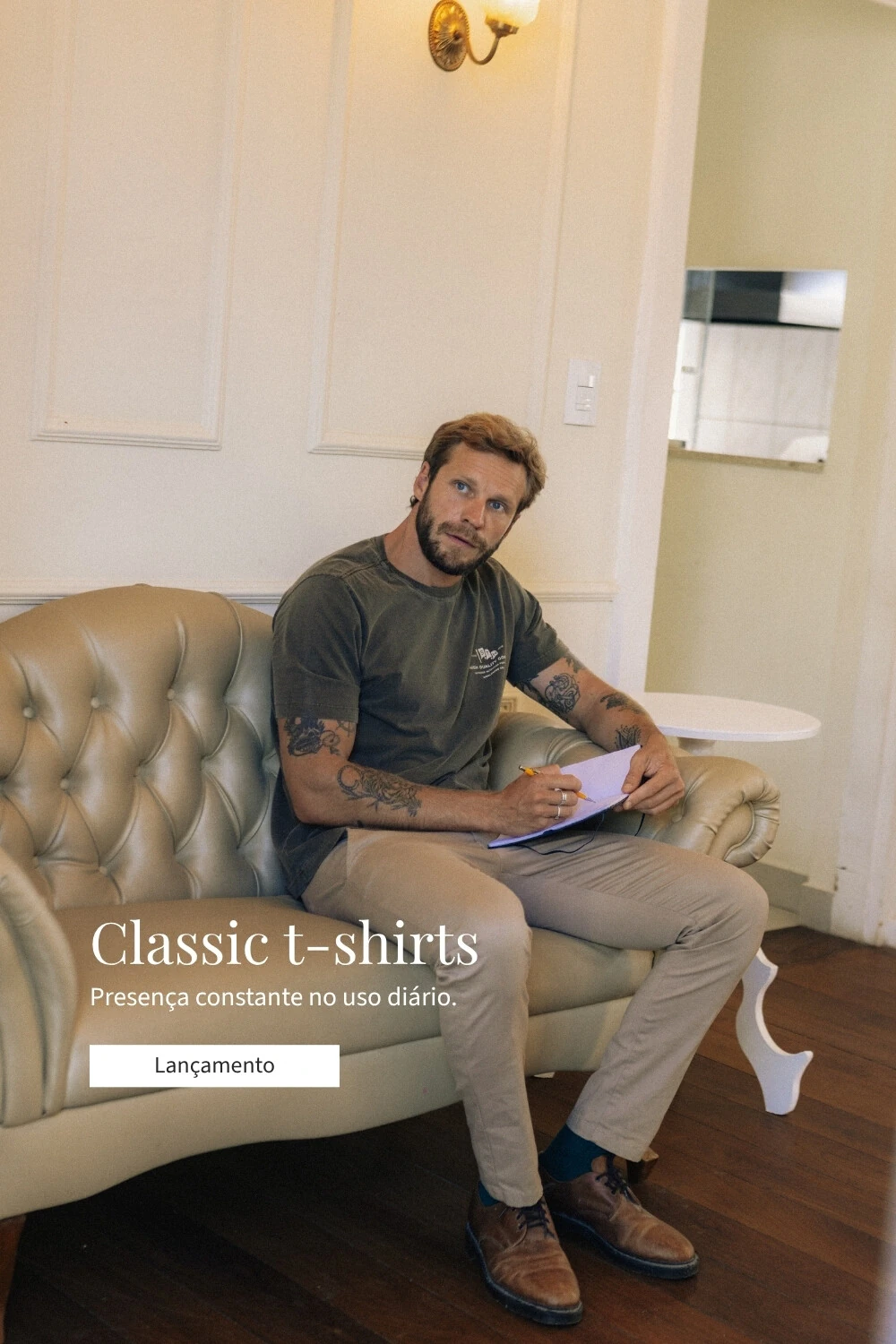 A chino entra no dia sem esforço.Acompanha o deslocamento, atravessa ambientes, mantém o ritmo sem exigir troca.Não depende da ocasião — se adapta a ela.Do início da manhã ao fim do dia, a peça permanece estável.Sem ajuste constante.Sem excesso. -