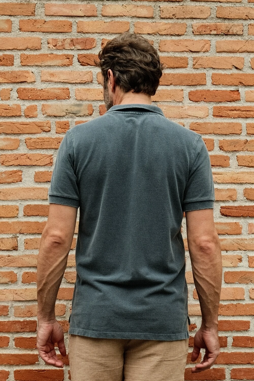 O visual levemente estonado traz uma aparência vivida, sem excessos — como uma polo que já faz parte da rotina. Clássica no desenho, honesta na construção e confortável desde o primeiro uso.