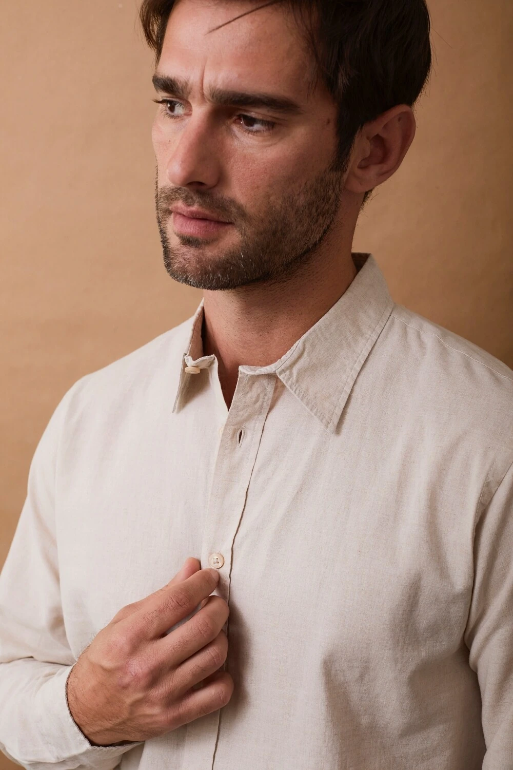 A camisa de linho manga longa da ST Hommes traduz a nobreza do tecido em sua forma mais autêntica. Feita com fibras naturais de alta qualidade, combina resistência e leveza em uma construção que respira junto ao corpo. O caimento firme e, ao mesmo tempo, descontraído revela a essência do linho: uma textura única, fresca, atemporal.