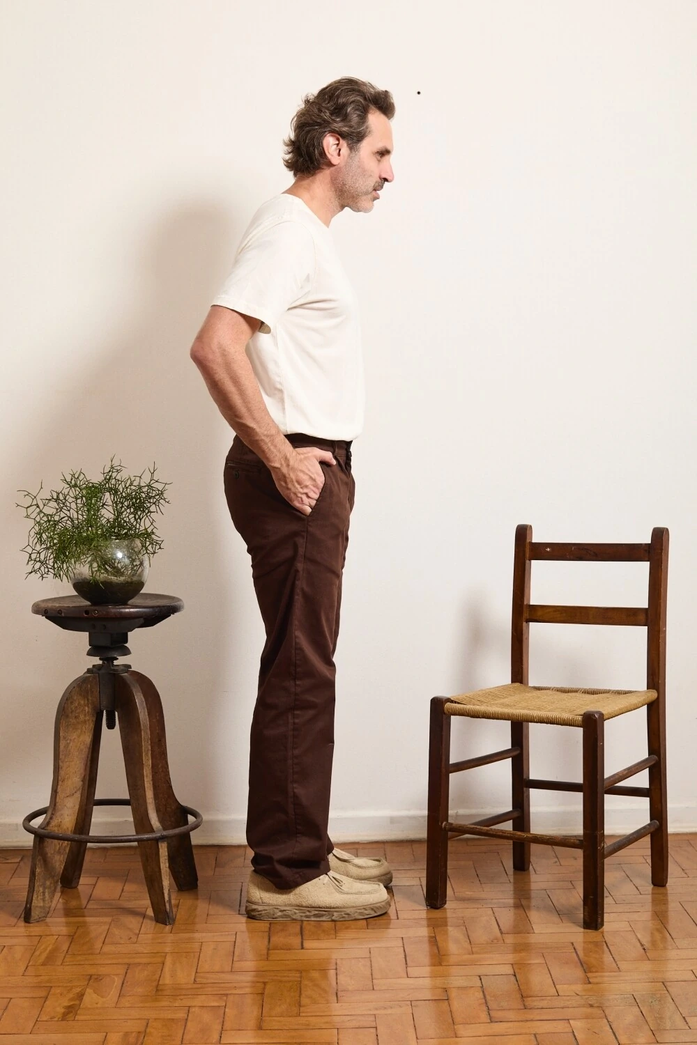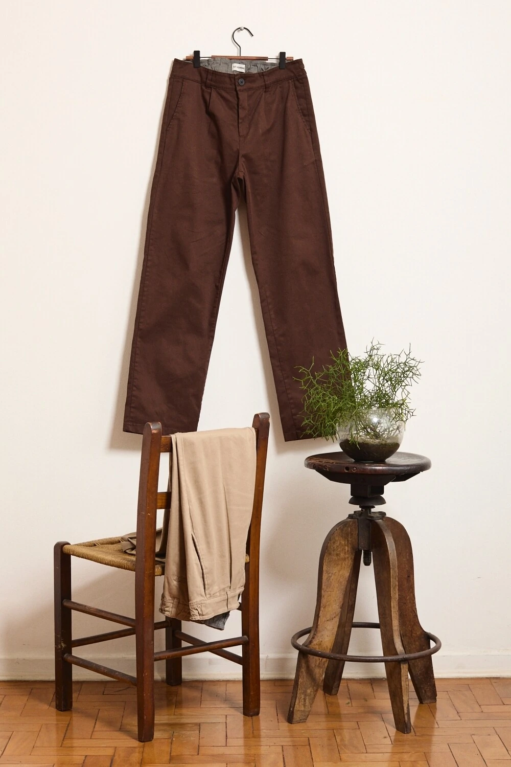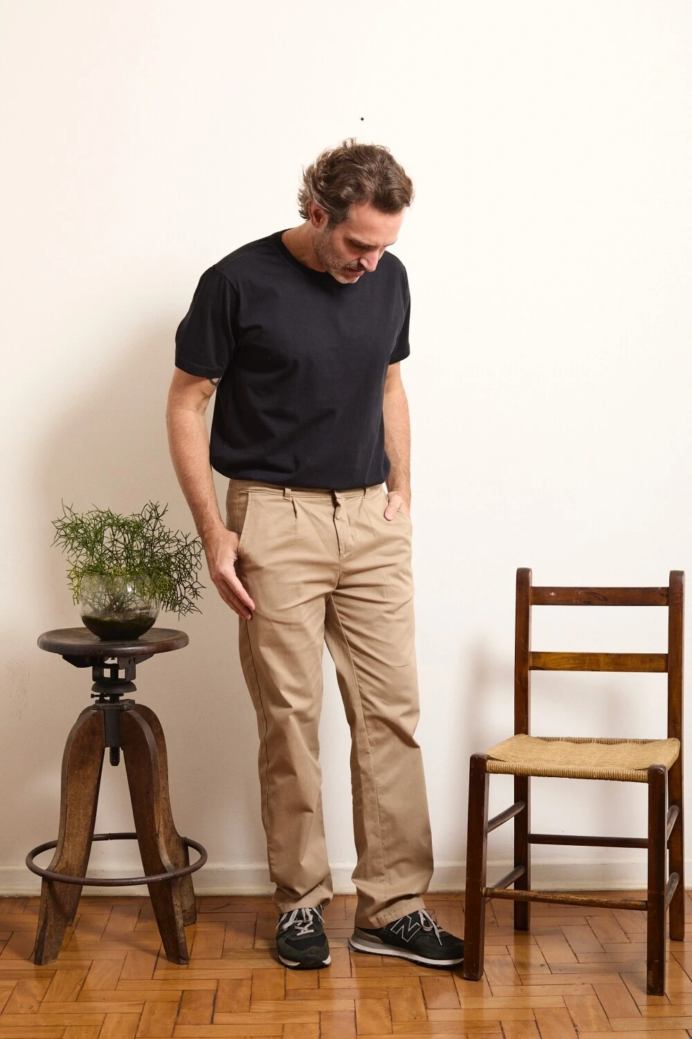 A calça chino de corte reto que eleva o visual casual a um novo patamar. Pensada para homens contemporâneos, esta peça combina versatilidade e sofisticação — perfeita tanto para um look urbano casual quanto para uma ocasião mais refinada.