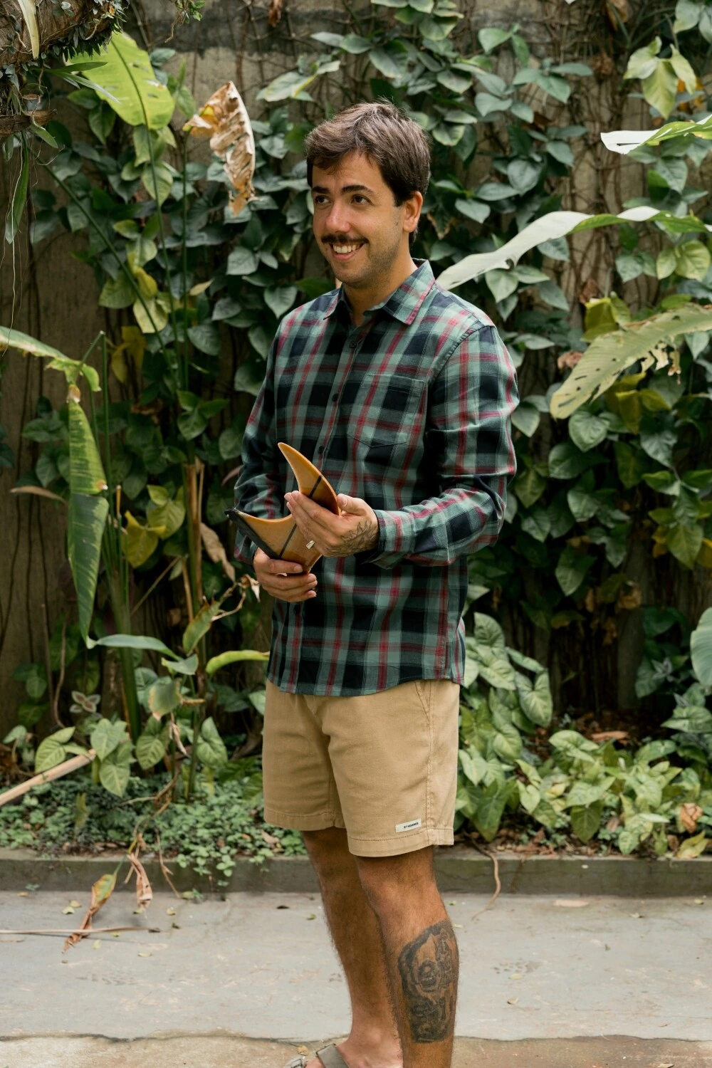 Shorts cor Khaki - Ricardo veste tamanho G e suas medidas são 1,86 e 86Kg