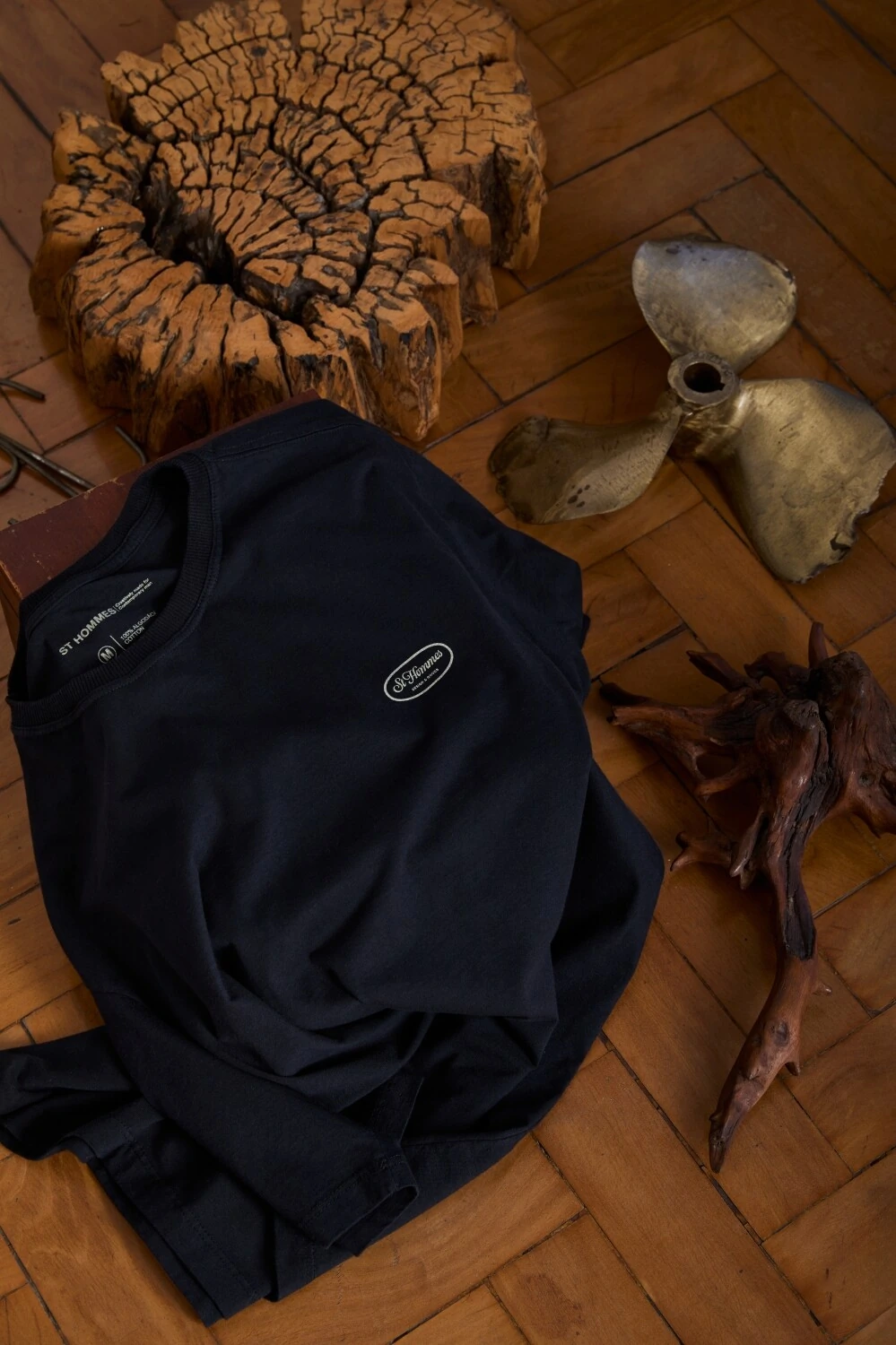 O silk em tipografia vintage no peito reforça a autenticidade e traduz a alma da peça: uma celebração da tradição, da estética clássica e da conexão com o essencial.