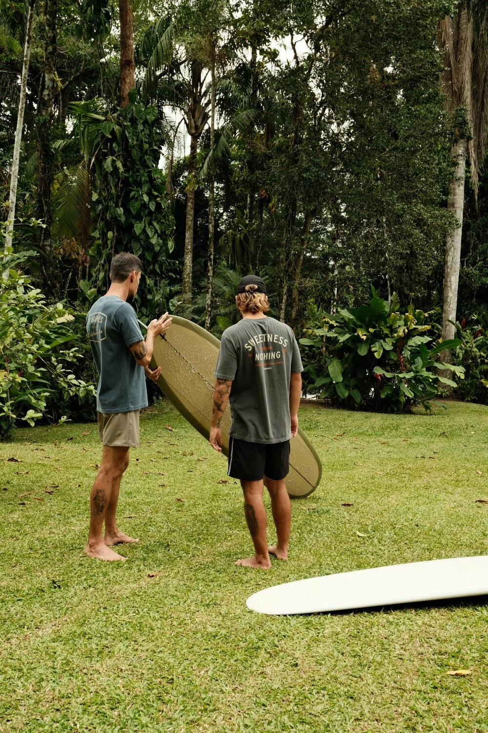 A tradução gráfica do lifestyle que inspirou toda a coleção: descanso, mar, sombra, conversa boa. A arte celebra a vida desacelerada que o verão oferece.