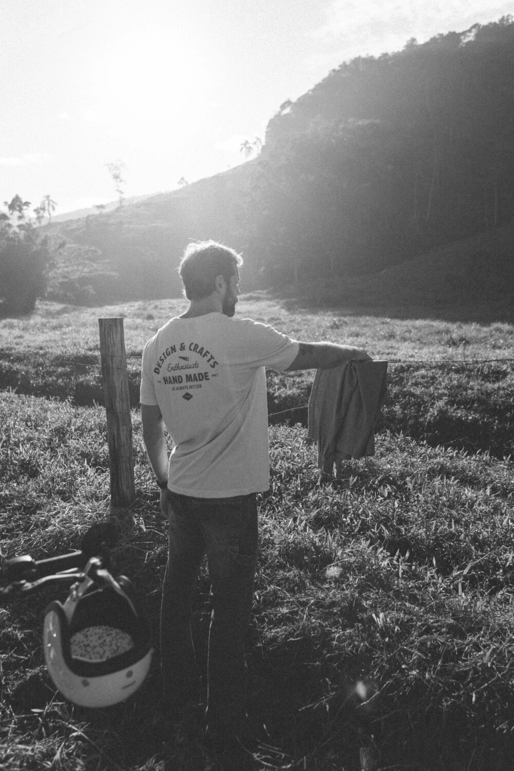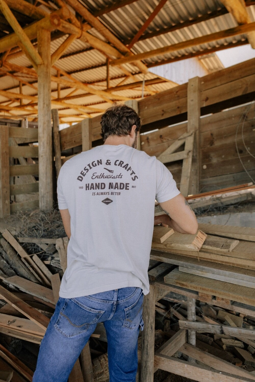 Parte de uma lógica simples: valor no que é feito com intenção. A estampa parte desse princípio . Construção, ofício, processo manual. Não como discurso, mas como referência direta ao fazer. A peça traz esse tema para o uso cotidiano, sem excesso. Uma base que carrega significado, mas permanece funcional.
