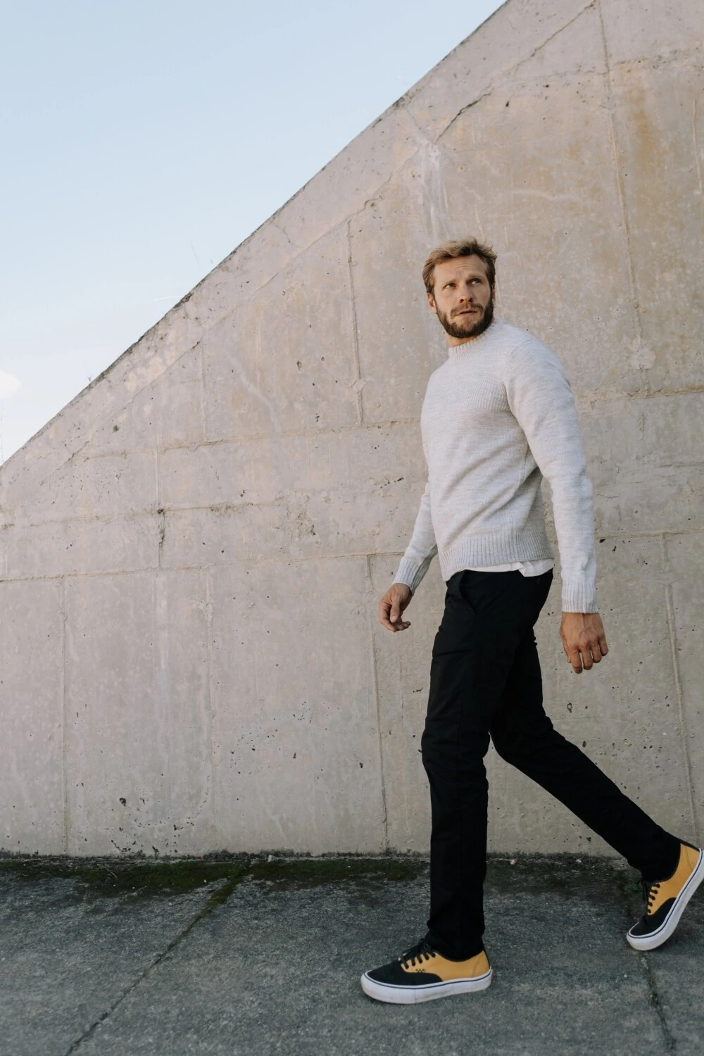 Frio estável, rotina contínua, peça que entra sem ajuste. O toque é macio, a superfície acompanha o corpo sem rigidez. A presença é discreta, construída no uso. Um tricô que sustenta o dia com naturalidade, sem chamar, sem sair.