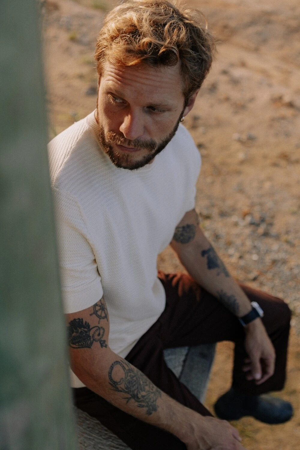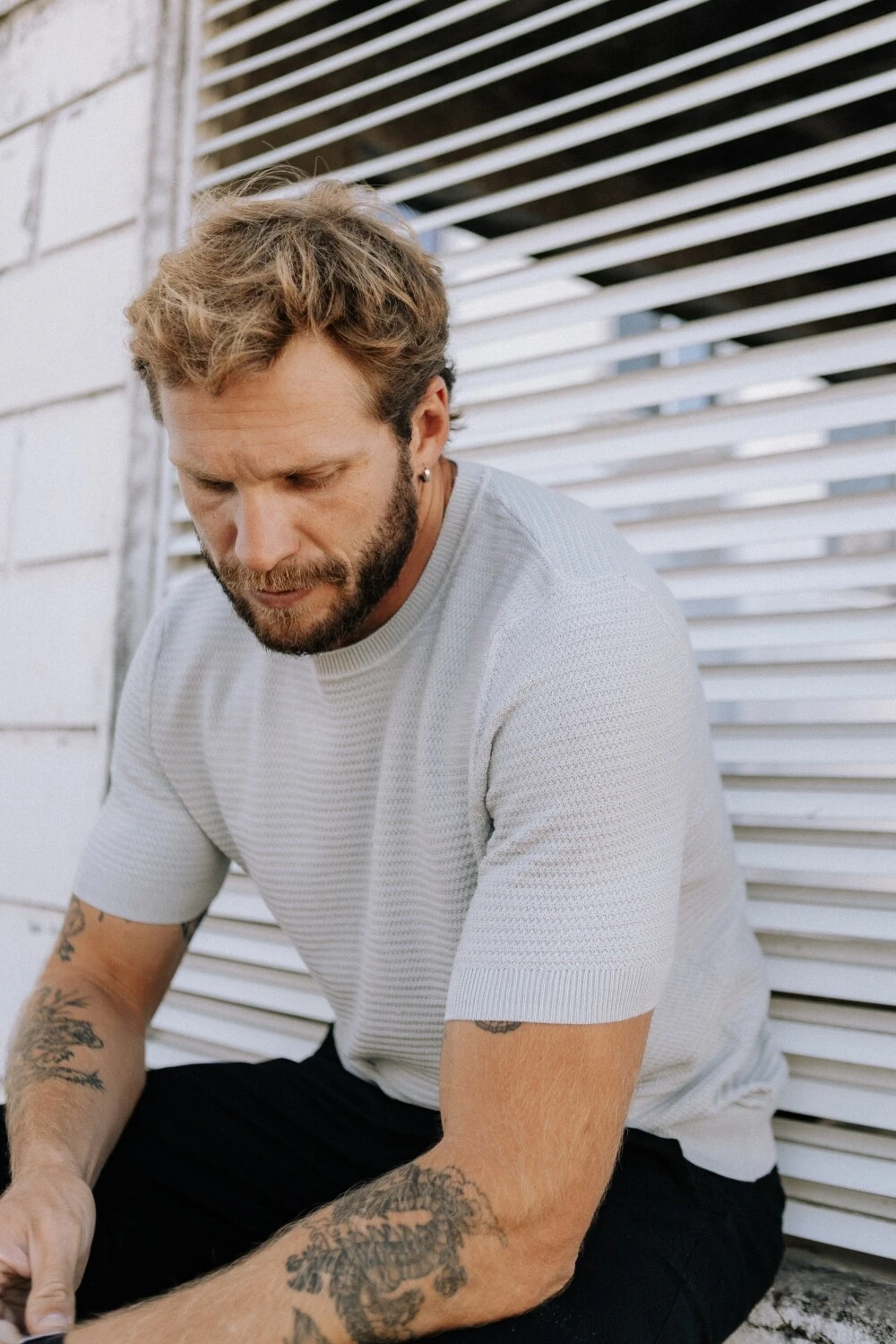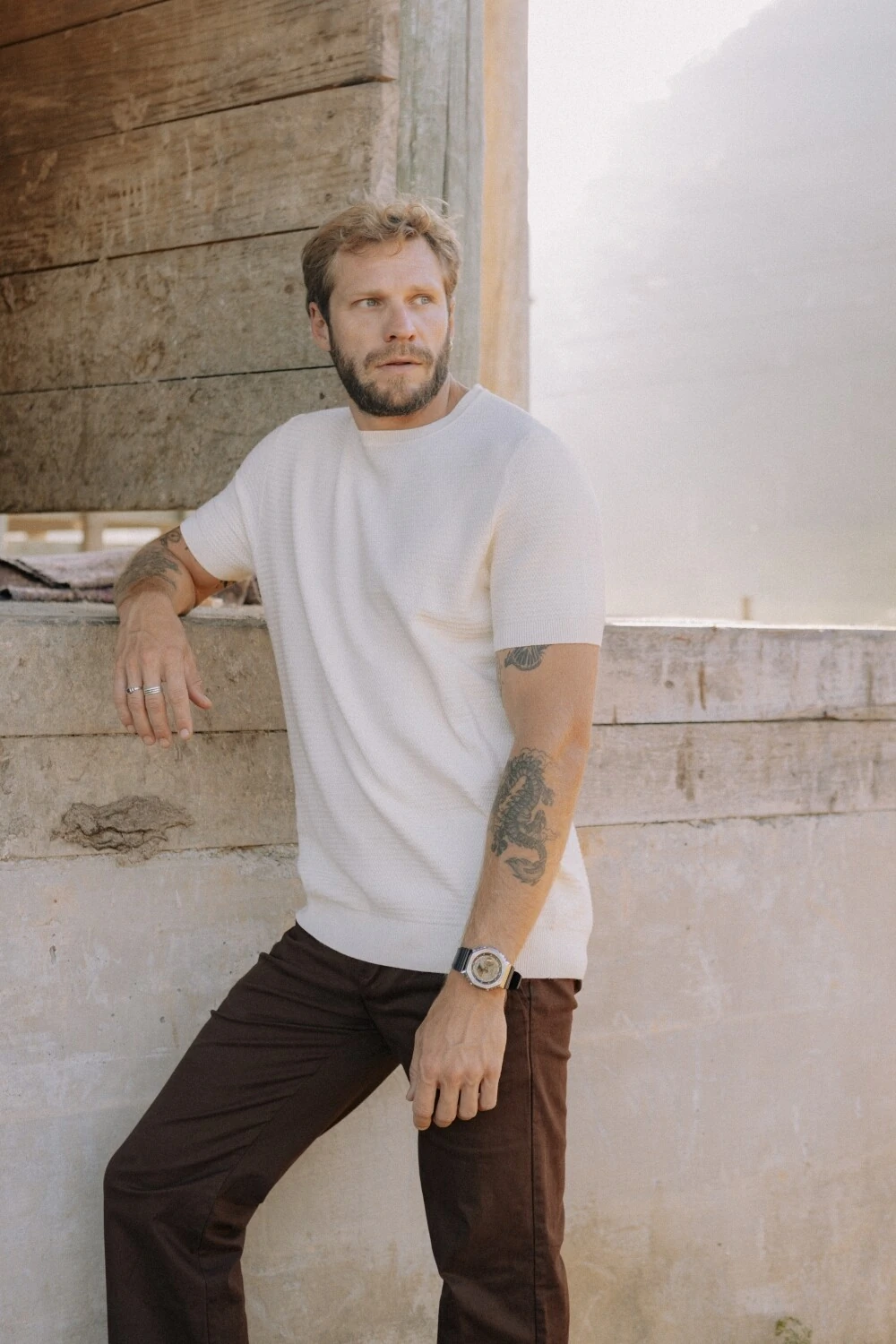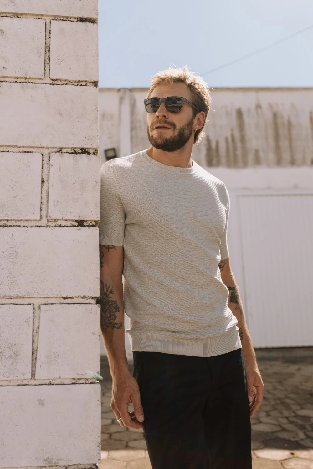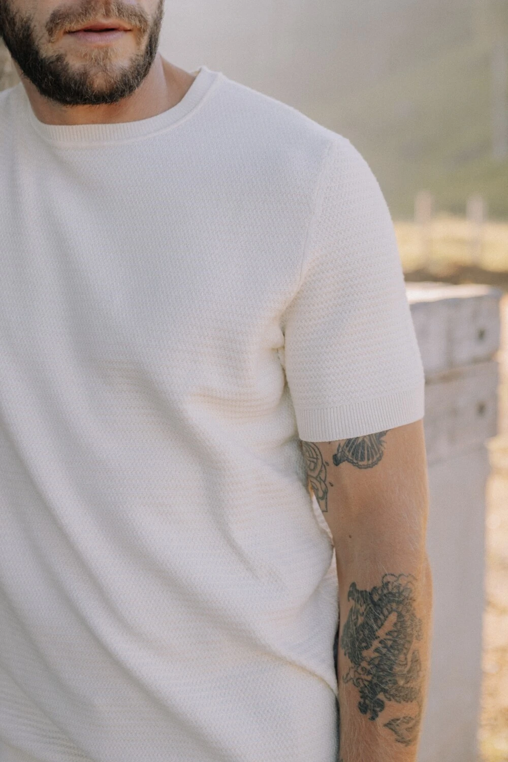 Ar em movimento, temperatura mais aberta, proximidade do mar. A peça respira e acompanha o corpo sem reter calor. Funciona como uma camada leve, entre a camiseta e o tricô tradicional. Um uso mais solto, onde o clima pede leveza, não proteção.