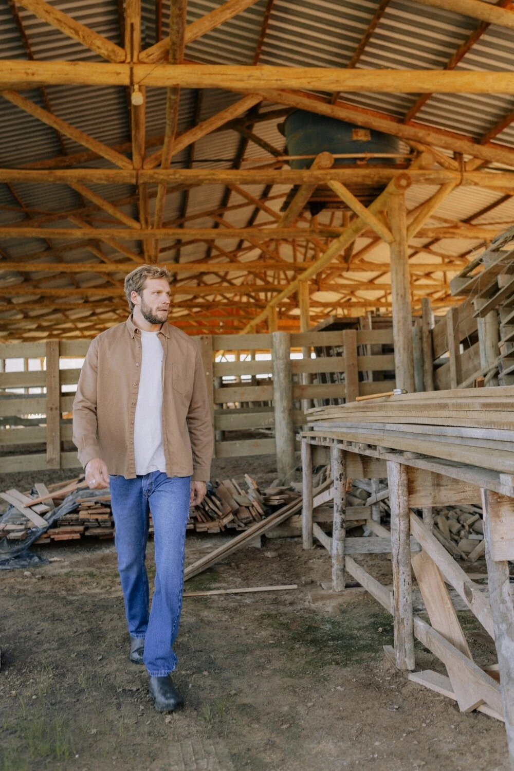 Rotina longa, movimento constante, uso contínuo ao longo do dia. A peça parte da base do denim tradicional, com referência em construções de trabalho que priorizam resistência e função. Mantém leitura limpa, com elementos integrados ao uso, sem excesso. Entra como fundamento, sustentando o restante sem interferir. Um uso direto, onde a calça acompanha o ritmo com consistência.